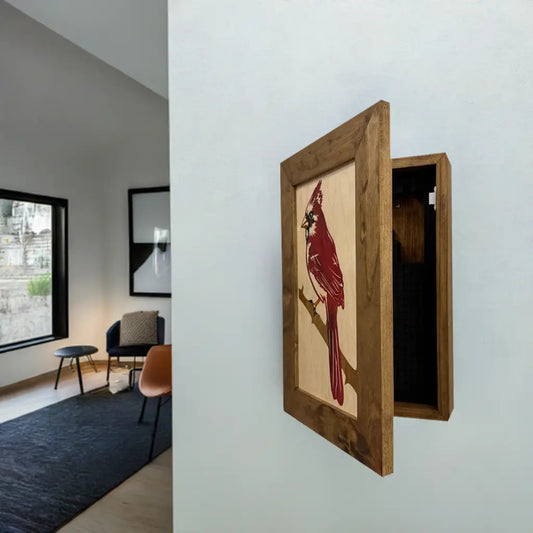 Decorative Hidden Gun Cabinet Red Cardinal Bird Wall Art - Secure Concealed Gun Safe by Bellewood Designs