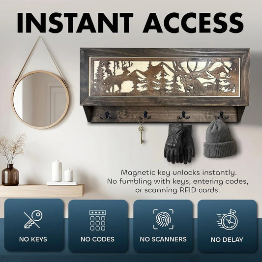 Deer Hunter Hidden Gun Storage - Coat Rack Concealment Shelf with Hooks for Coats, Bags, & Hats - Quick Access Hidden Gun Shelf - Hidden Storage Furniture with Secure Magnetic Lock