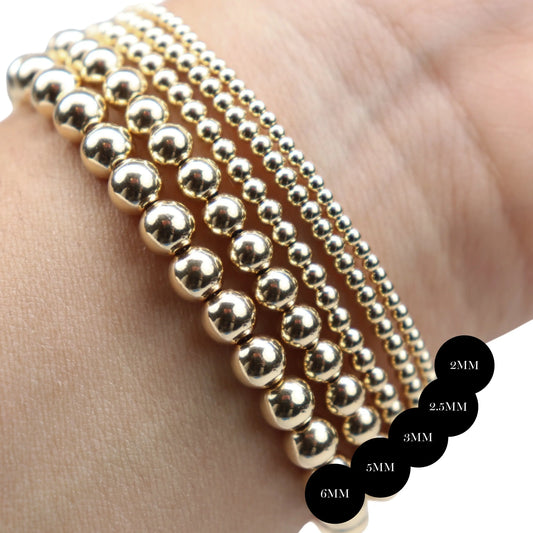 Stretchy Gold-Fill Beaded Bangle Bracelets, 14/20 Gold-Filled, 6.5" Diameter