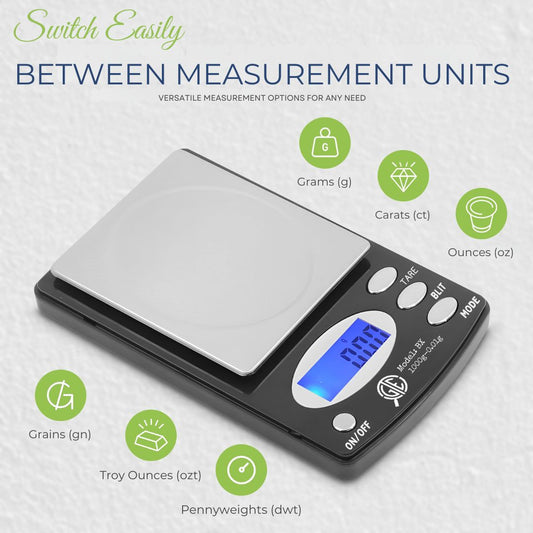 Digital Weighing Scales for jewelry, coins, bullion, and parcels. Pocket and mini bench models with tare, backlit display, multi unit readings, and calibration weight support.