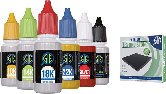 PuriTEST Gold and Silver Jewelry Testing Solutions Kit 10k 14k 18k 22k 24k Scratch Stone Acid Test Scrap Bars Coins