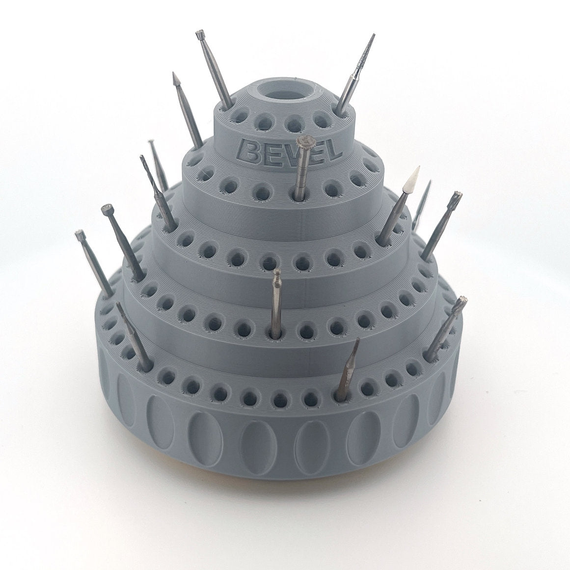 Optimize your workspace with the BEVEL™ Small Bur Holder and Organizer. Designed for efficiency and ease, this compact organizer features five levels with a total of 124 holes to neatly store 3/32” shank burs. The BEVEL™ Organizer’s smooth, rotating design allows quick access to your tools, so you can effortlessly find the right bur whenever you need it. With its space-saving footprint, this small bur organizer keeps your work surface tidy, making it the ideal tool for jewelers and craftspeople who value organization and functionality.