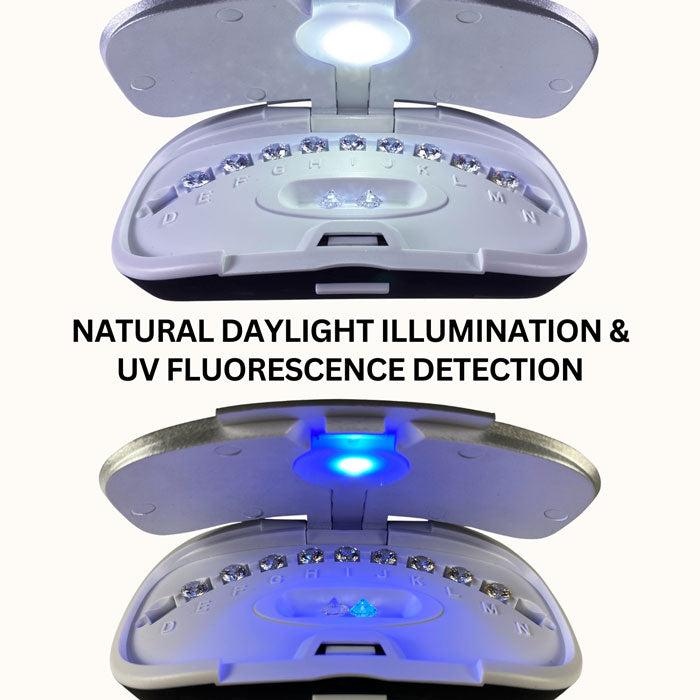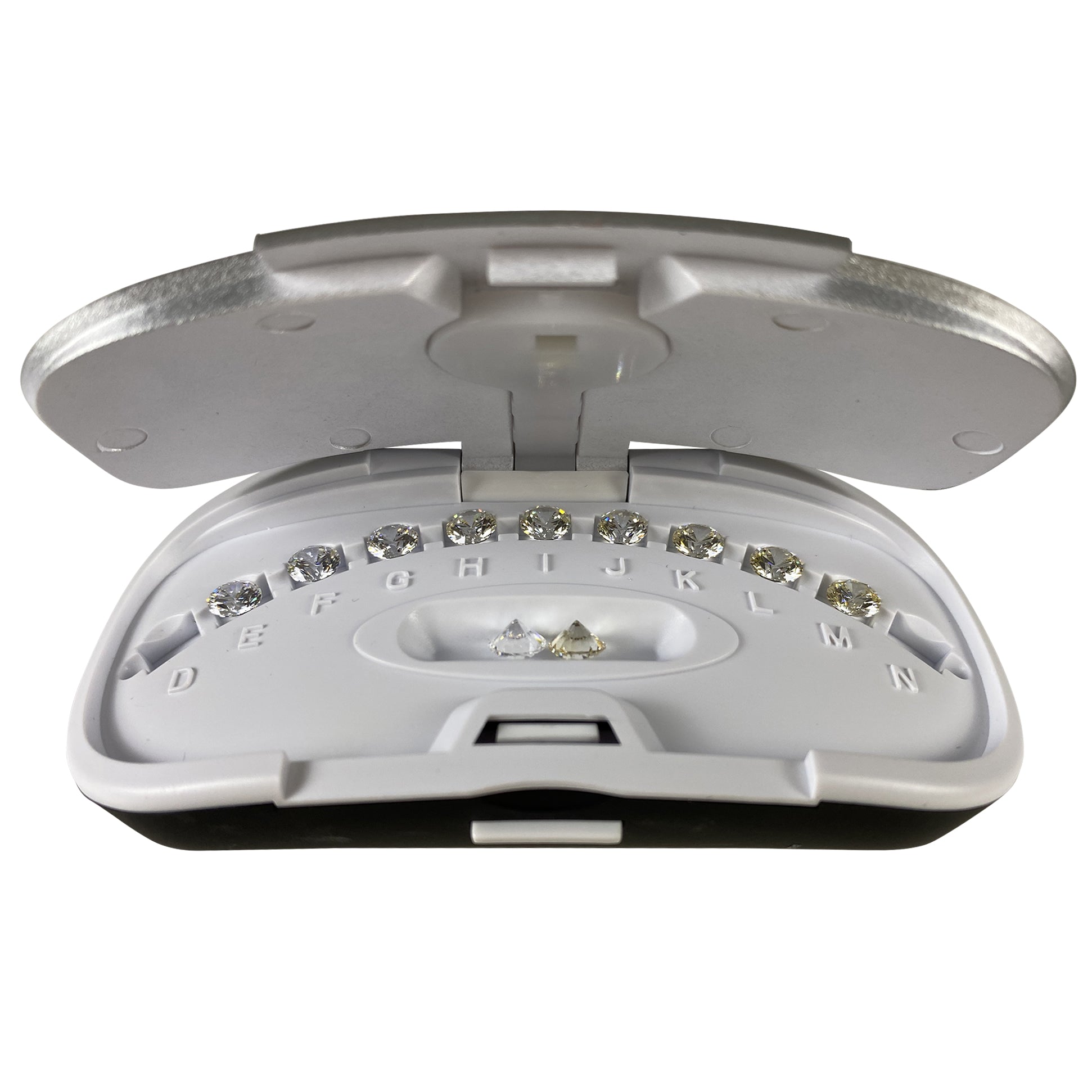 Professionally color grade diamonds in seconds with GEMORO’S new generation CZ Master Set Pro 2! Each stone in the precision CZ Master Set Pro 2 is treated with GemOro’s proprietary ColorLast technology to ensure permanent color saturation. It is expertly hand-graded to master diamond color standards using the GIA grading scale. The set comes in GemOro’s PATENT PENDING LED illuminated grading and storage case, featuring daylight and UV LEDs, powered by rechargeable NiMH batteries and a micro-USB charging/power system.