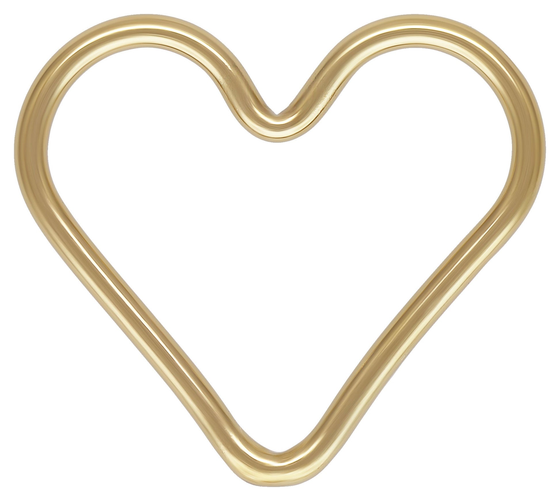 A heart shaped jump ring with a wire size of 1.0mm and a wire gauge of 18. The width of the ring is 15.0mm and it is made of 14K yellow gold filled material that has been yellow gold plated for color uniformity.
