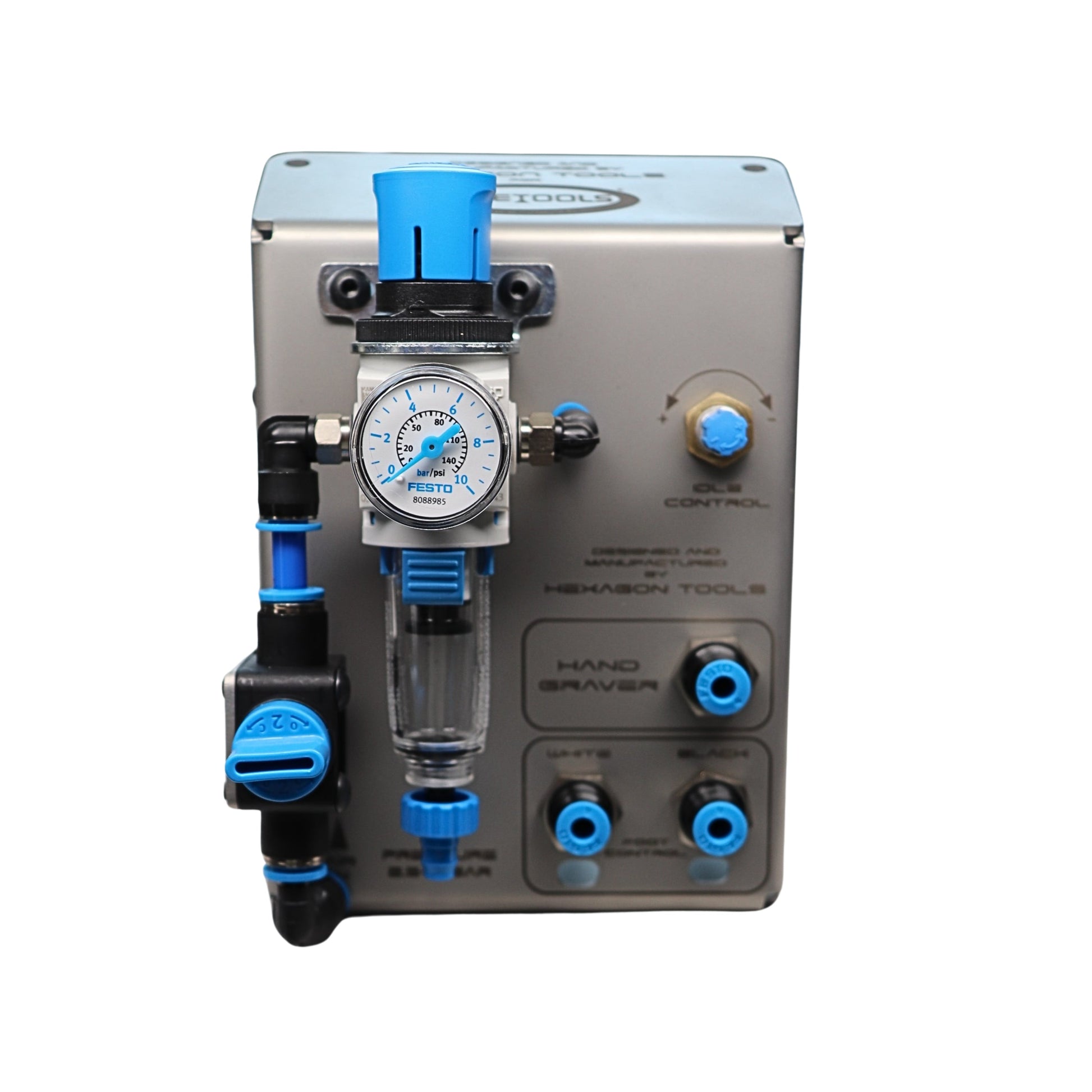 • Plug & Play – Fully equipped out of the box; simply connect to an air compressor, insert gravers, and start working.