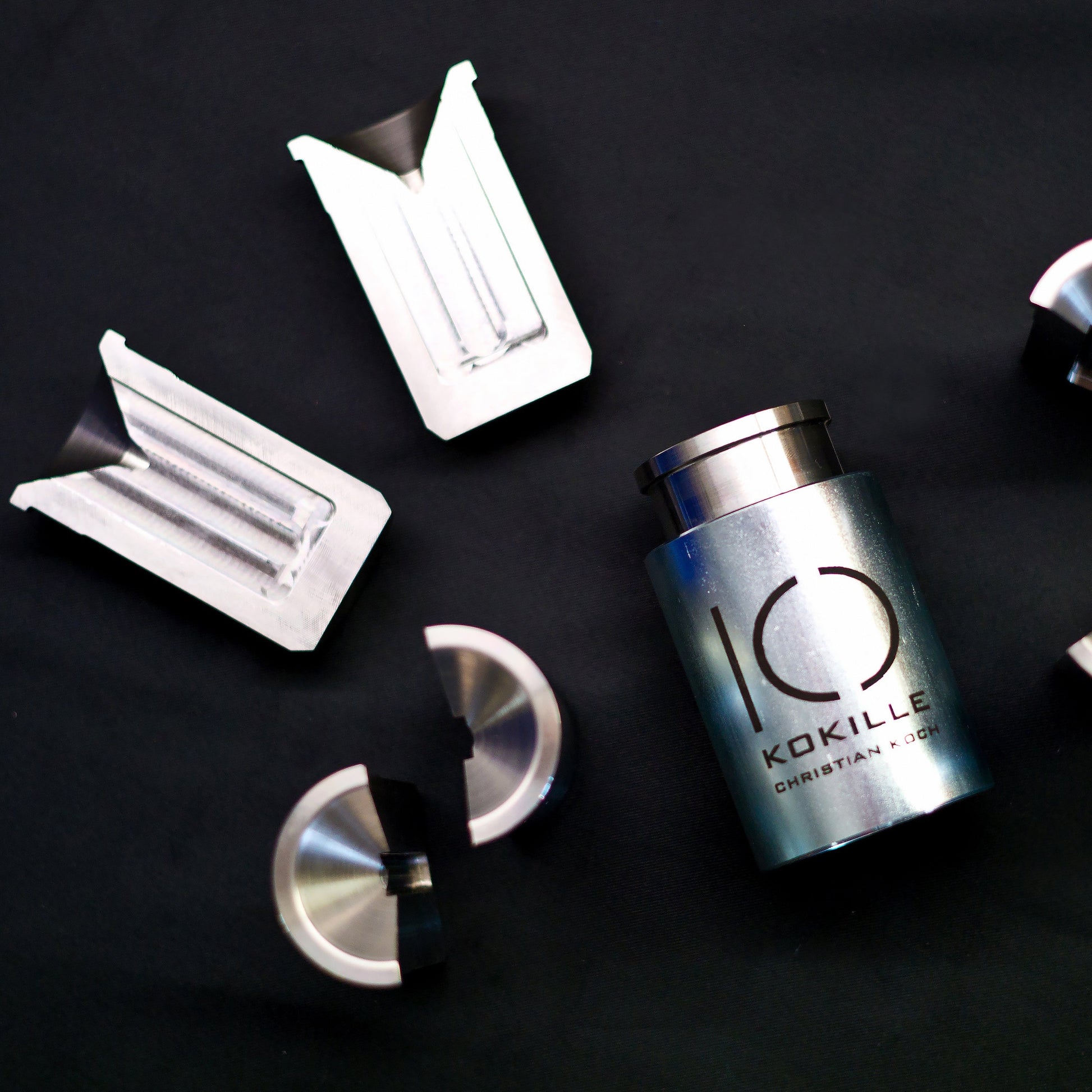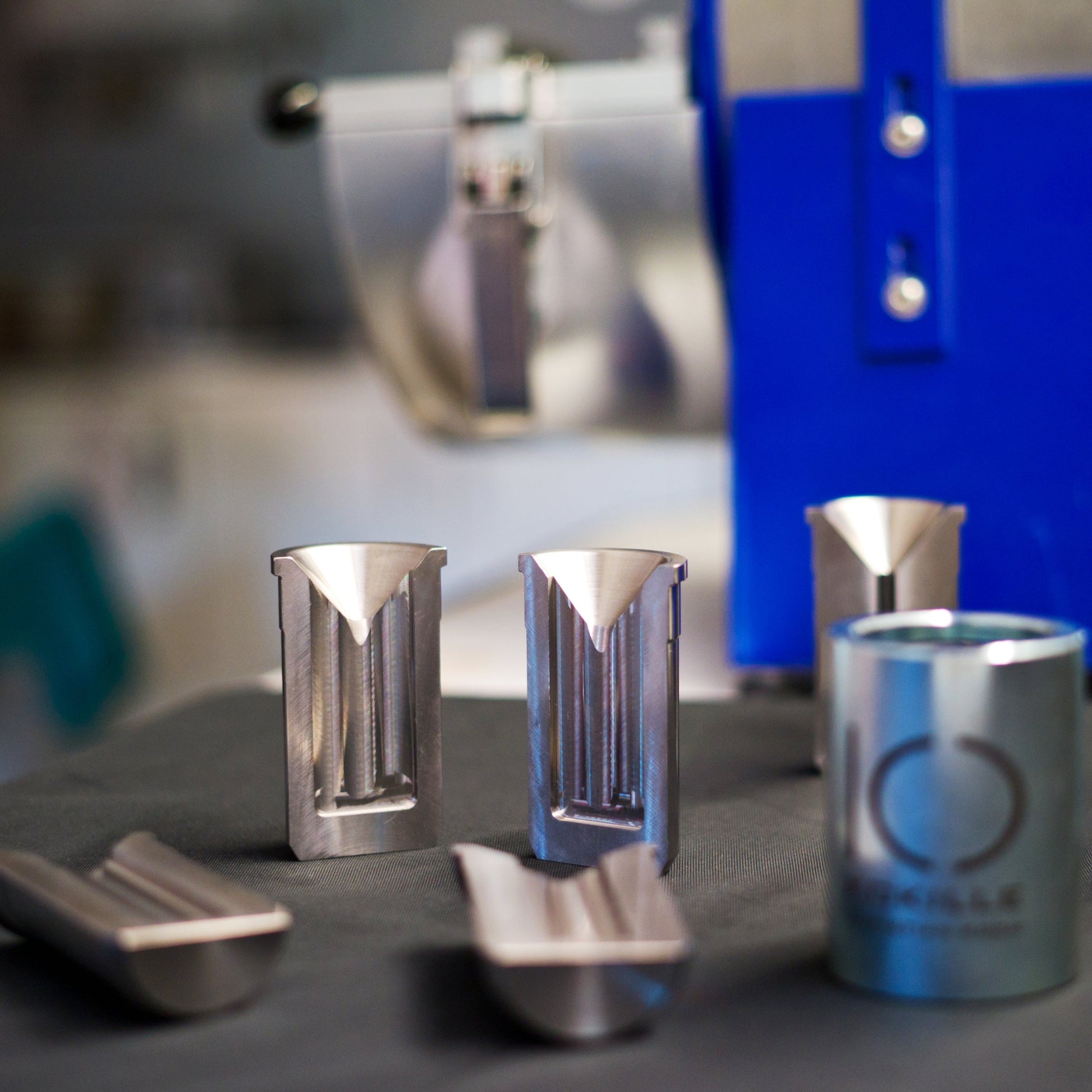 An innovative line of ingot molds engineered and designed by Austrian goldsmith Christian Koch. Now exclusively available in the USA by Pepetools. Each individual ingot mold is made from three pieces. The mold itself is machined from round billet, with a matching pattern on either side. Each side then comes together in an innovative metal sleeve which allows for a consistent ingot from all material types. Pour in gold, silver, platinum, and more. Furthermore, the mold is designed to fit into production induction casing machines. Throughly optimized design for perfect metal flow into the mold cavity. Two stainless steel halves and one precision alignment cylinder for a perfect ingot, every time. Alignment cylinder is held together with high-temp o-rings utilizing friction and gravity to align mold precisely