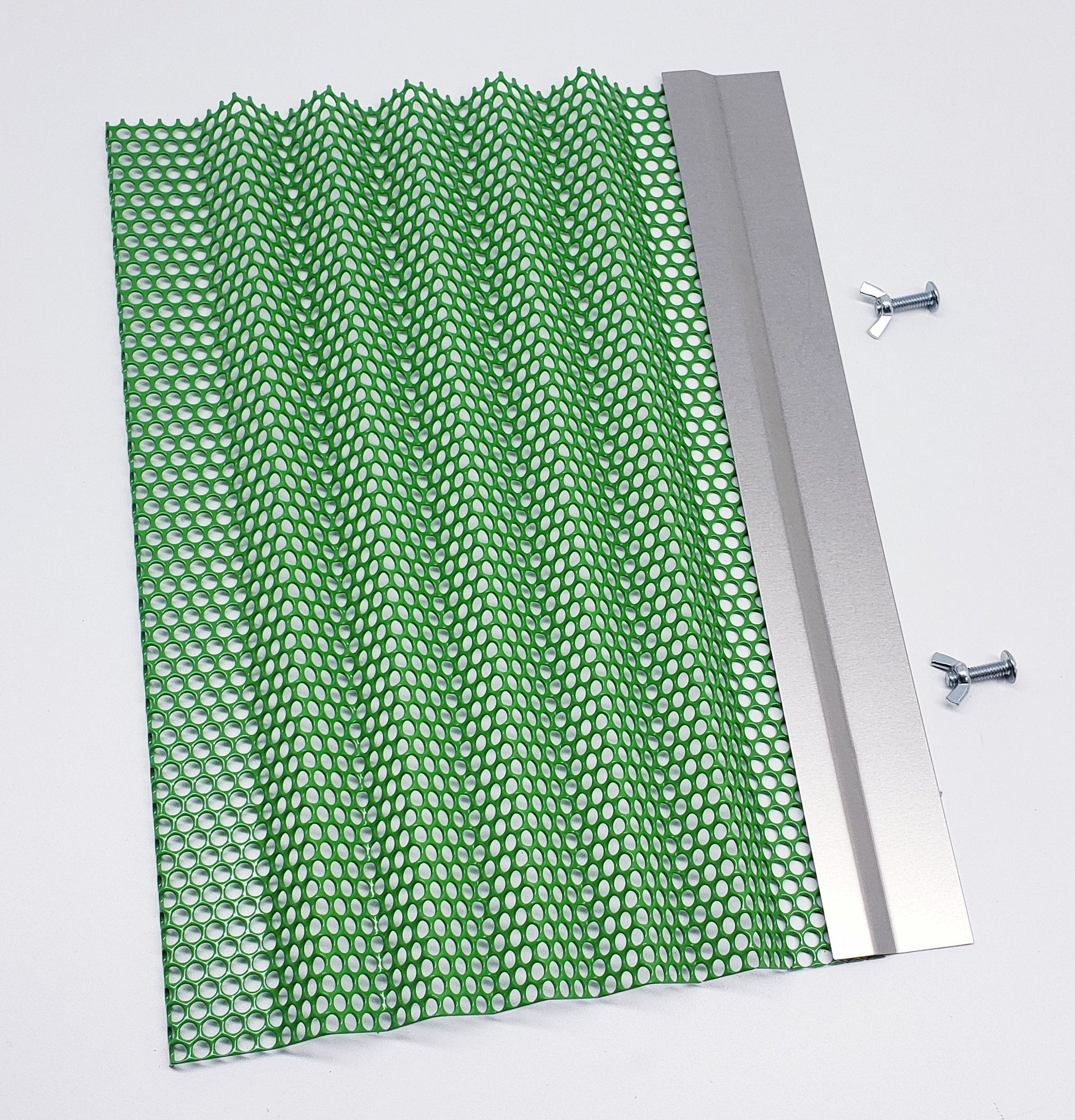 16 Ga. 1/4" perforated sheet, w/ 5x 3/4" tall zigzag riffles for widths 16"-20"-24"