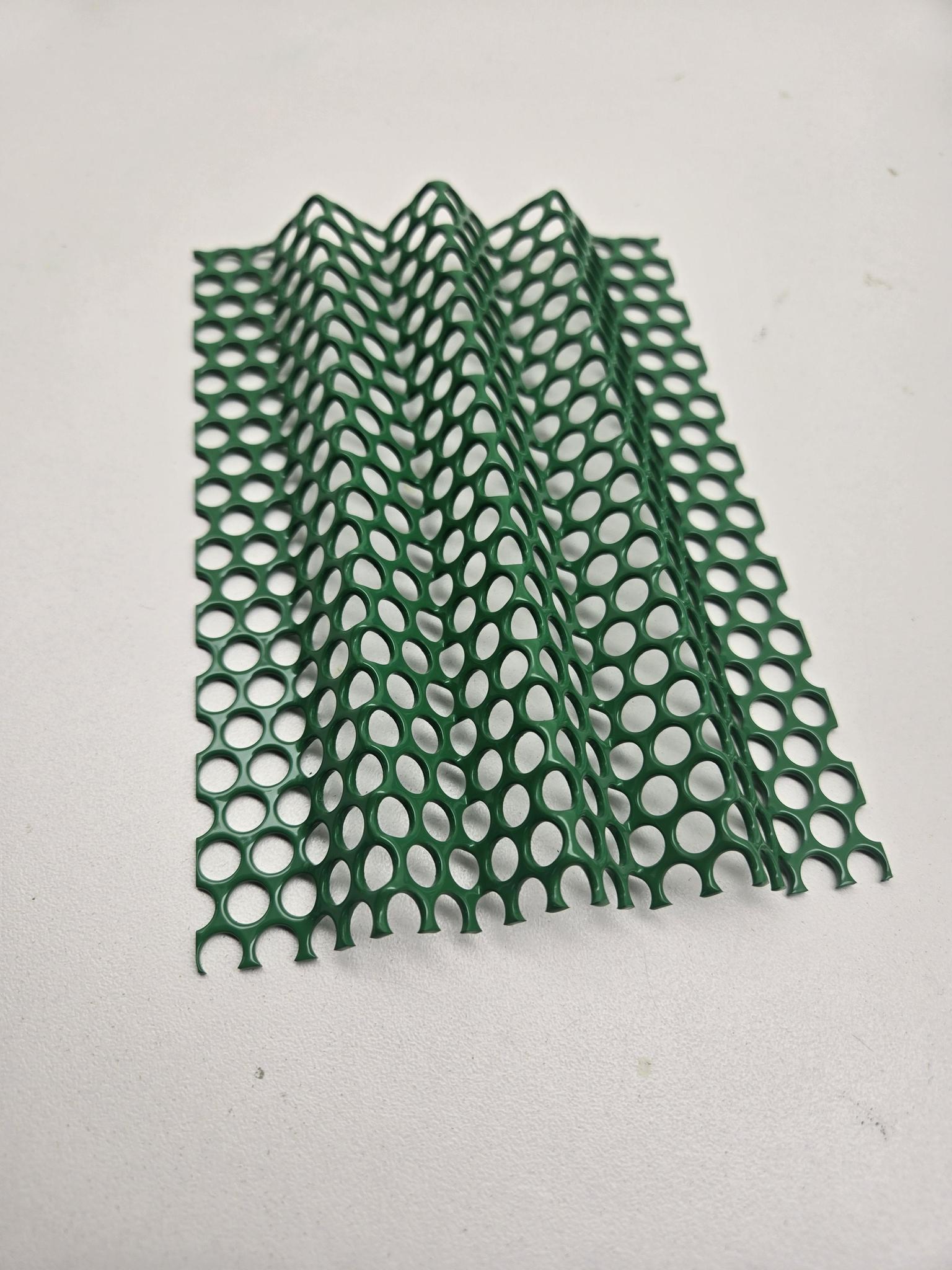 16 Ga. 1/8" perforated sheet, w/ 5x 5/8" tall zigzag riffles for widths 8"-10"-12