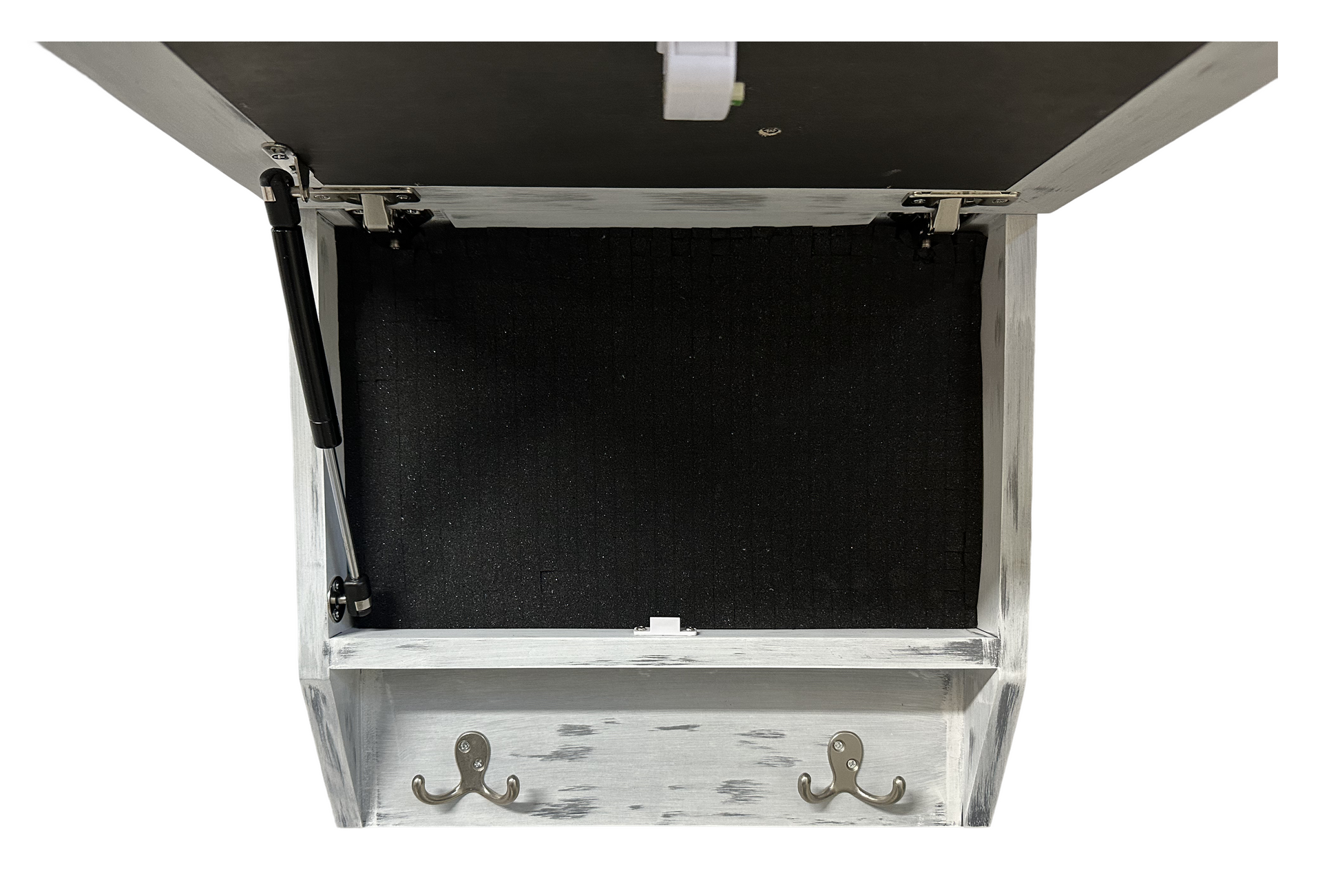 - Secure magnetic lock provides fast access while keeping firearms concealed