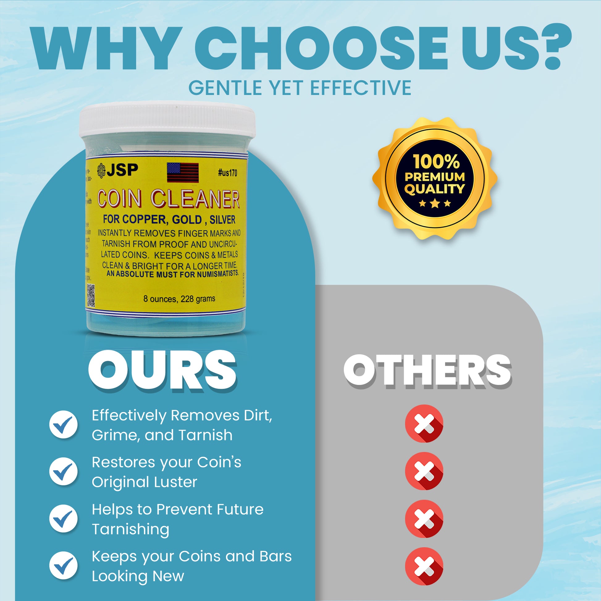 JSP Super Coin Cleaner 8 oz for Copper, Gold, Silver, & Platinum Precious Metals Jewelry Coins Bars